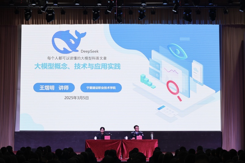 为深化人工智能通识教育,3月5日晚,应用法律系在警体馆成功举办人工智能科普系列讲座首讲,活动特邀宁夏建设职业技术学院人工智能领域资深专家王熠明老师担任主讲,其在大模型技术研发与应用领域有深度研究和丰硕成果。讲座由应用法律系主任陡明韬主持,学院各系部1400余名师生参加讲座。