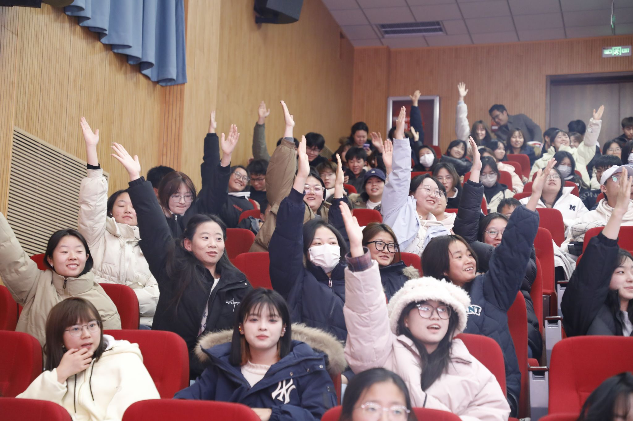 在“明法笃行”环节设置宪法知识互动问答,现场学生积极参与抢答,充分展现了扎实的学习成效,有效提升了大家运用宪法思维分析解决问题的能力。