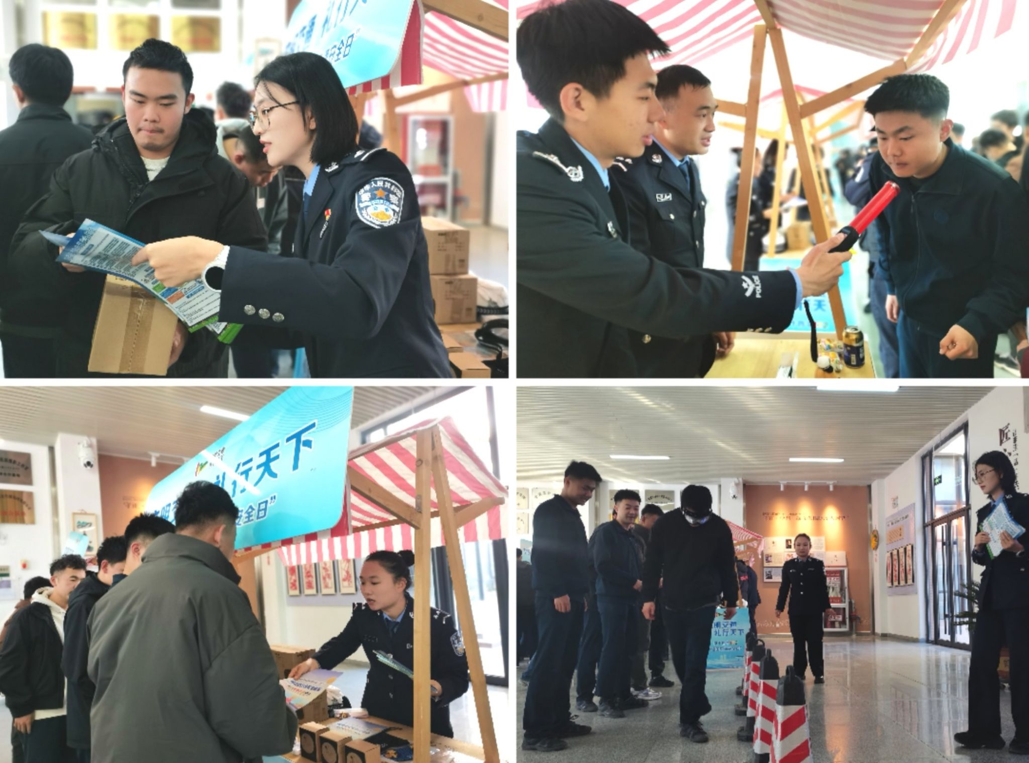 活动开启幕前,外场精心设置的酒驾体验“小店”、事故警示“小店”、禁毒“小店”、反诈“小店”等互动体验区,成为现场师生学习安全知识的“移动课堂”热闹非凡。在酒驾体验“小店”,学生代表戴模拟酒驾眼镜试走直线、绕障碍,直观感受酒精对判断力的影响;事故警示“小店”展示的事故车辆,让大家直观感受“违章一秒,危险万分”;禁毒与反诈小店通过实物、案例科普防护知识。各体验区同步开展答题互动,学生答对安全相关问题可赢取定制钥匙扣、反光贴等礼品,在趣味中加深知识记忆,为活动预热。