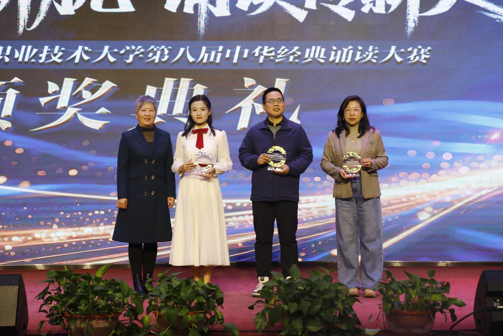 比赛邀请行业内朗诵艺术专家边城、王强等担任评委,经过激烈角逐,工业工程学院凭借出色的舞台表现夺得金奖;校园之声广播站、纺织与服装技术系获得银奖;软件学院、农业学校与艺术设计学院荣获铜奖。此外,商学院摘得最佳表演奖,鹿鸣国学社荣获“最佳人气奖”,健康管理与社会服务学院凭借“经典新绎”获得“创意改编奖”,生命科技学院与马克思主义学院荣获“优秀组织奖”。