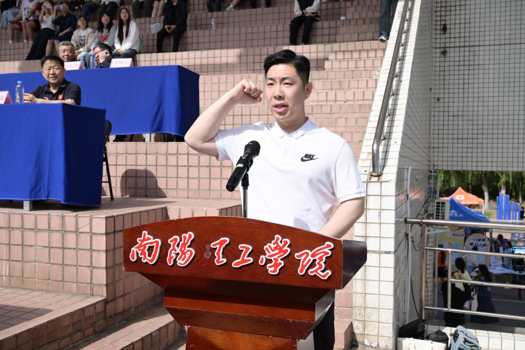裁判员代表和运动员代表分别宣誓。张爱红宣布南阳理工学院2025年春季运动会正式开幕。