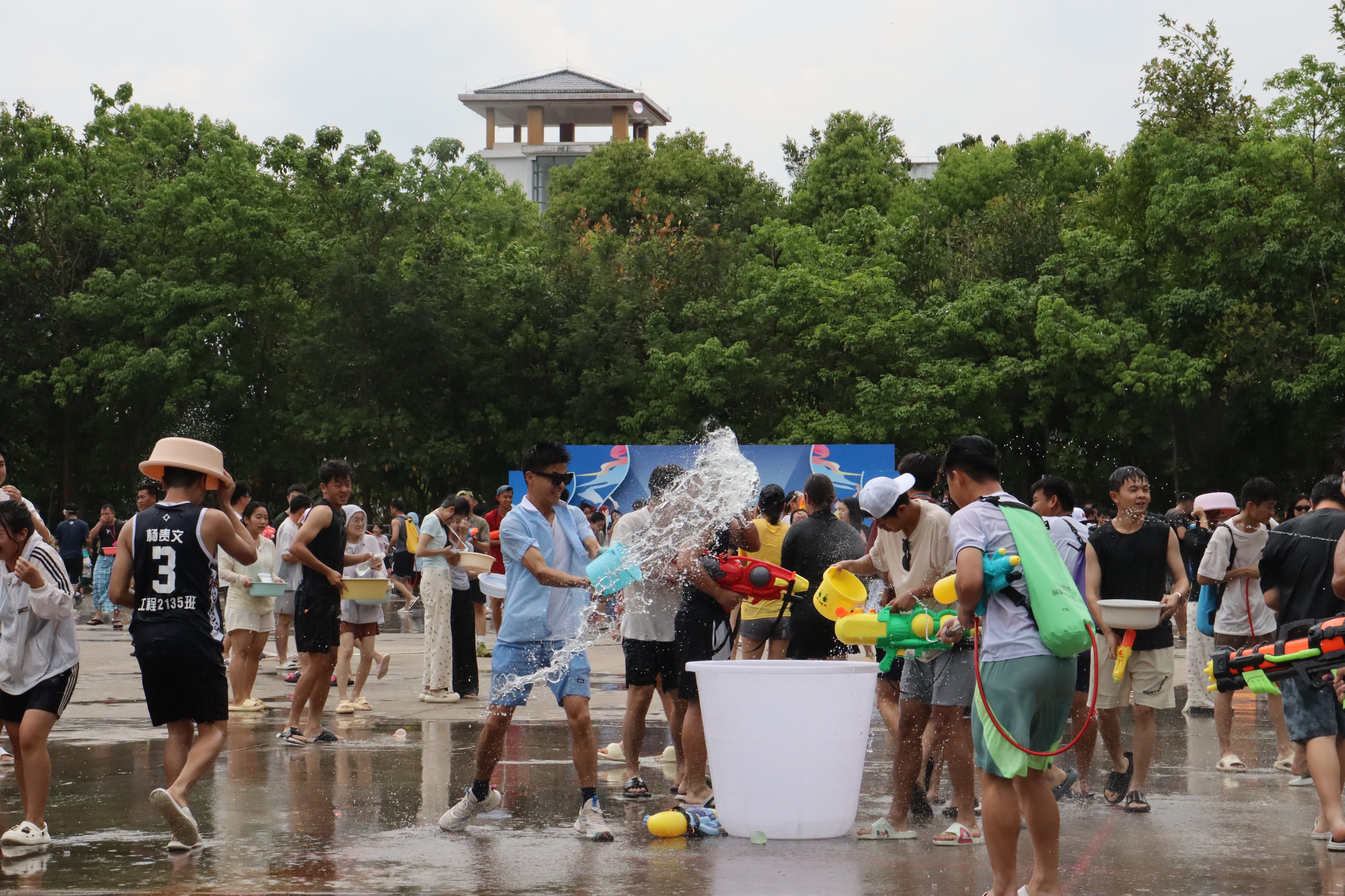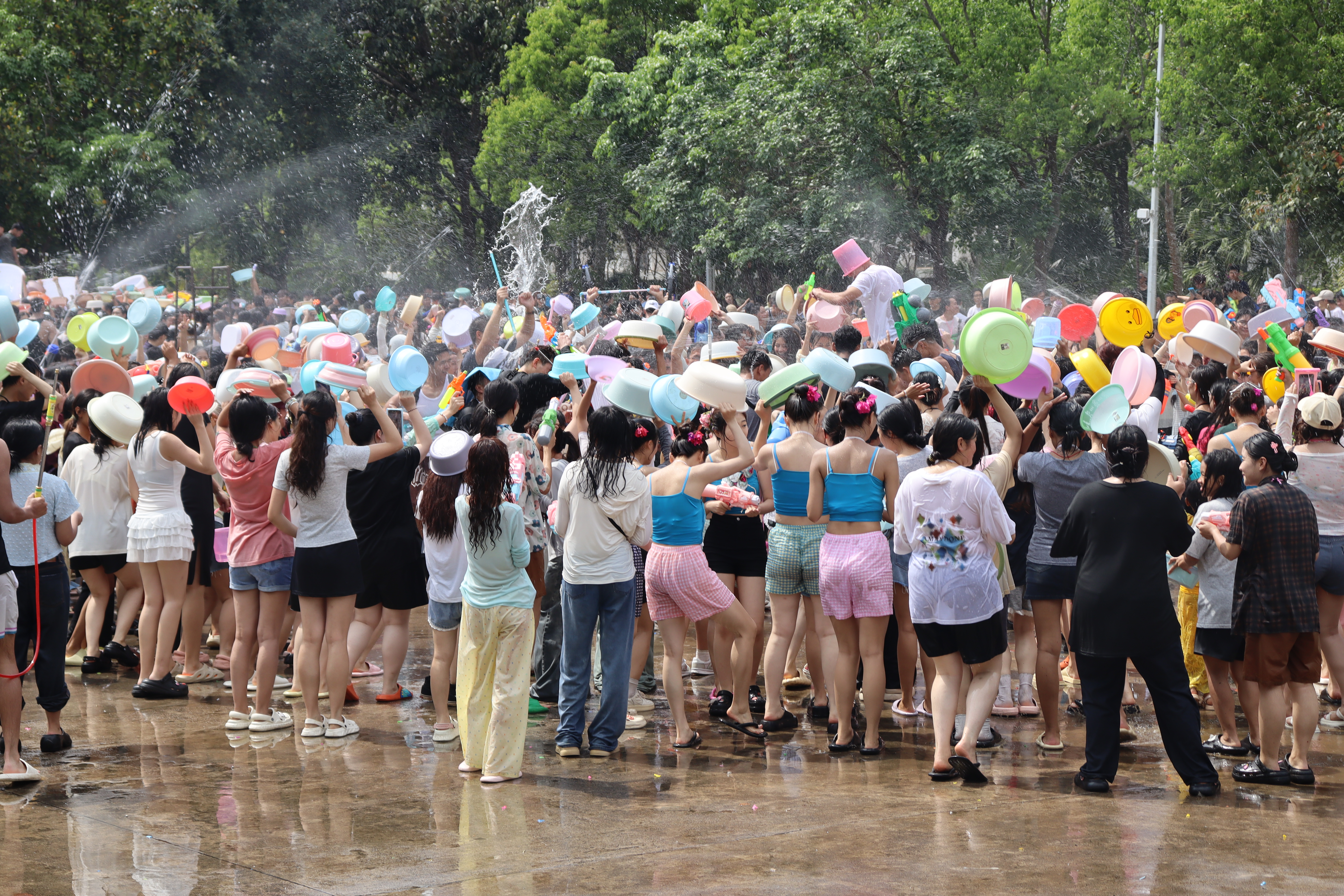 随后,伴随着欢快的音乐,师生们手持水盆、水枪,互相泼洒清水,表达美好的祝愿。活动现场,水花飞溅,笑声不断。活动结束后,师生们虽浑身湿透,但脸上洋溢着幸福的笑容。“师生同泼幸福水”的环节,不仅让师生们体验了传统节日的乐趣,更在欢声笑语中凝聚了集体的力量,展现了校园的活力与温情。