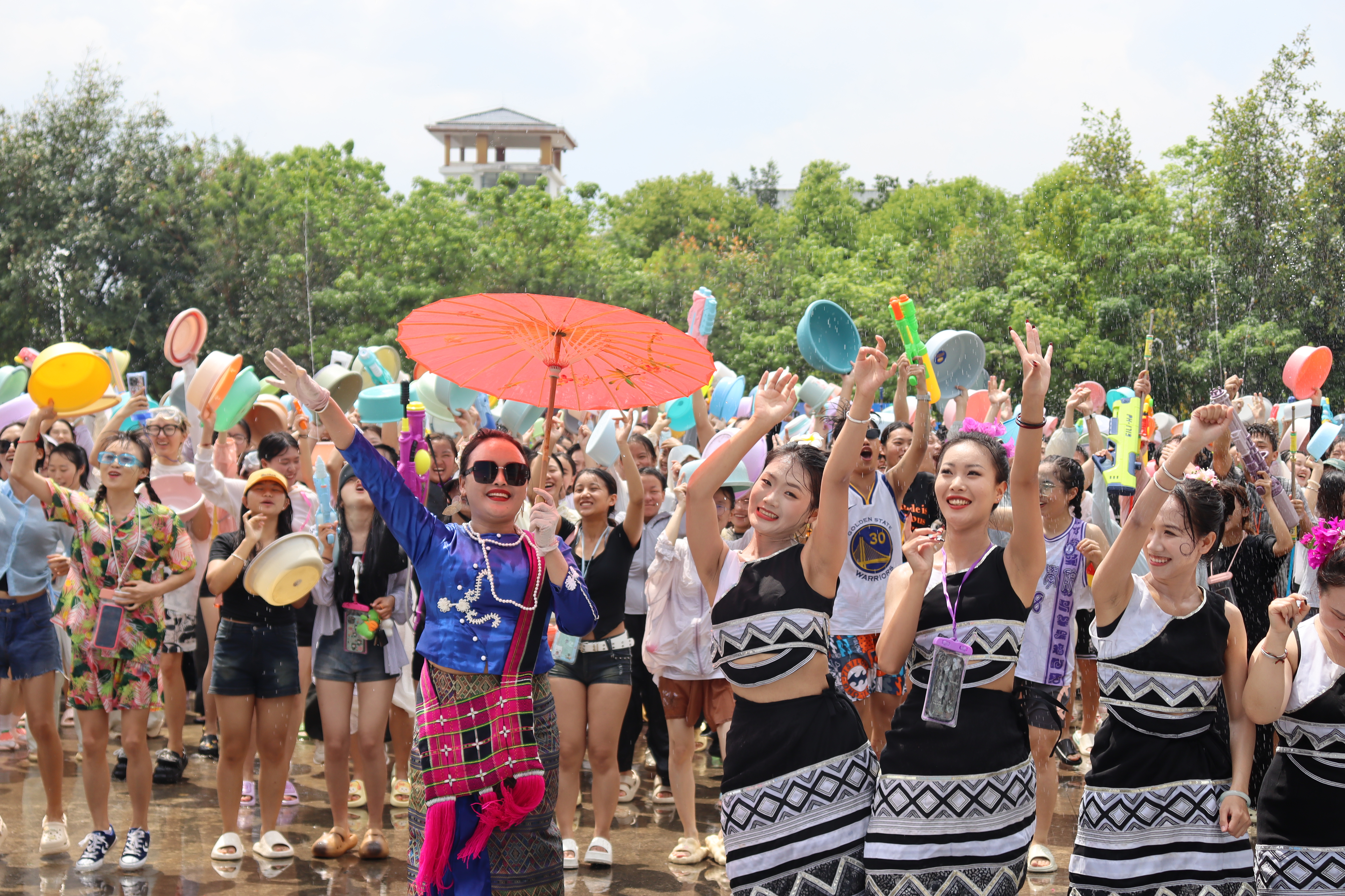 微风轻拂,水花四溅,欢声笑语回荡校园。4月12日下午,普洱学院东区广场变身“水上乐园”,举办了一场以“中华民族一家亲”为主题的校园泼水节文化活动。全校千余名师生共同参与活动。