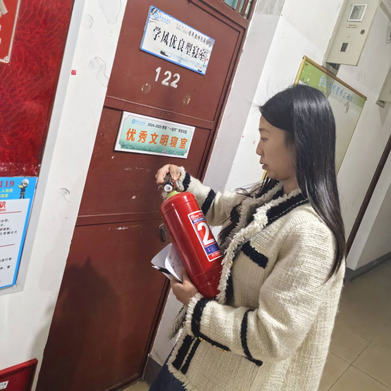 此次检查紧扣“查隐患、堵漏洞、提意识”的核心目标,对照省教育厅隐患排查要求,重点聚焦学生公寓用电安全、消防设施、应急通道等关键领域。检查小组逐楼逐层深入寝室,严查私拉乱接电线、违规使用大功率电器、“三无”劣质电器、电线插座老化破损、无人时电子设备长期充电等突出问题,同步排查电动车电瓶进寝充电、寝室内易燃易爆物品存放、杂物堆积等隐患;细致核验灭火器、消防栓等设施完好度,确保疏散通道、安全出口畅通及常闭式防火门处于正常状态。