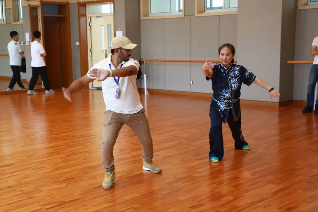 在青岛幼儿师范高等专科学校实践工坊,留学生们化身传统文化的“体验官”,深度参与非遗技艺传承:跟随非遗传承人学习胶州秧歌“三道弯”体态,感悟东方舞蹈的韵律之美;亲手制作曹州面塑,将中国生肖元素与本国文化巧妙融合;编织寓意吉祥的非遗绳结,体验传统工艺的精巧构思;演练三铺龙拳招式,领会刚柔并济的东方武术哲学。乌兹别克斯坦留学生手持自创“丝路驼队”面塑作品感言:“非遗技艺是打开中国文化的重要钥匙,让我们直观感受到传统与现代的交融共生。”