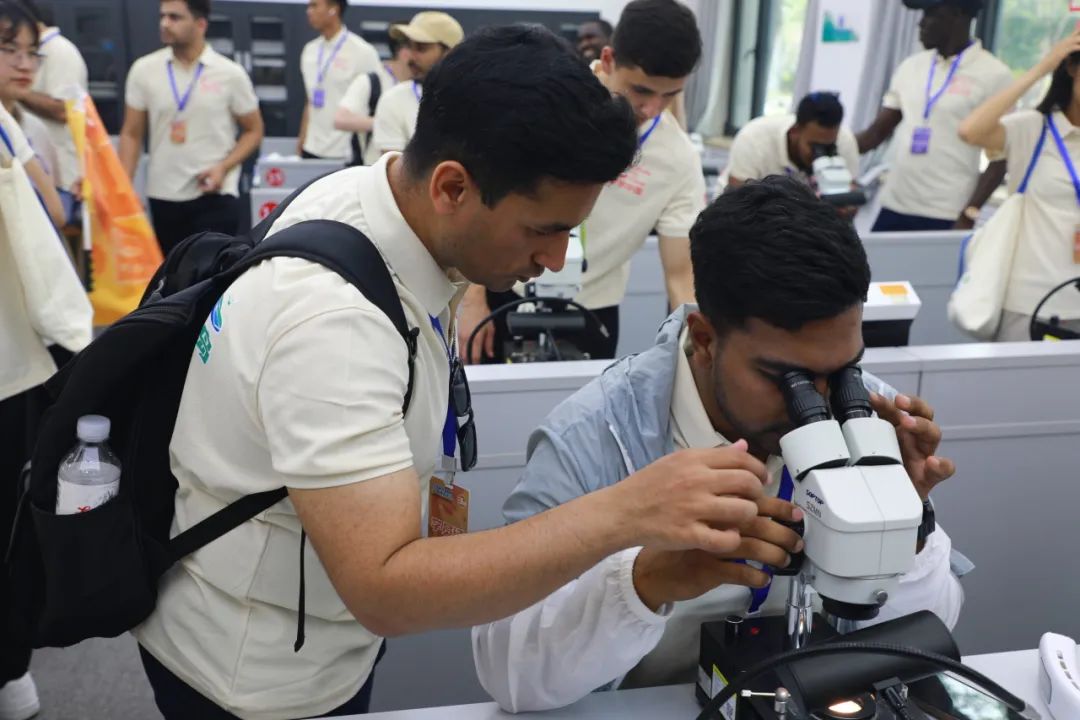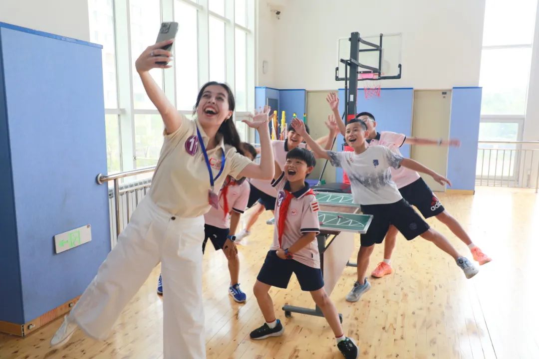 人文交流与支教活动同步推进,成为本次践学的又一亮点。100名上合国家青年及在华留学生分赴胶州市昱华实验小学和青岛晨星实验学校开展交流。通过“快乐体育”课程、趣味实验、沙画创作等形式,共同描绘“友谊之花”,搭建起跨越国界的心灵桥梁。哈萨克斯坦留学生感慨道:“语言和文化的差异无法阻隔真挚的善意,孩子们的笑容就是最美的交流符号。”