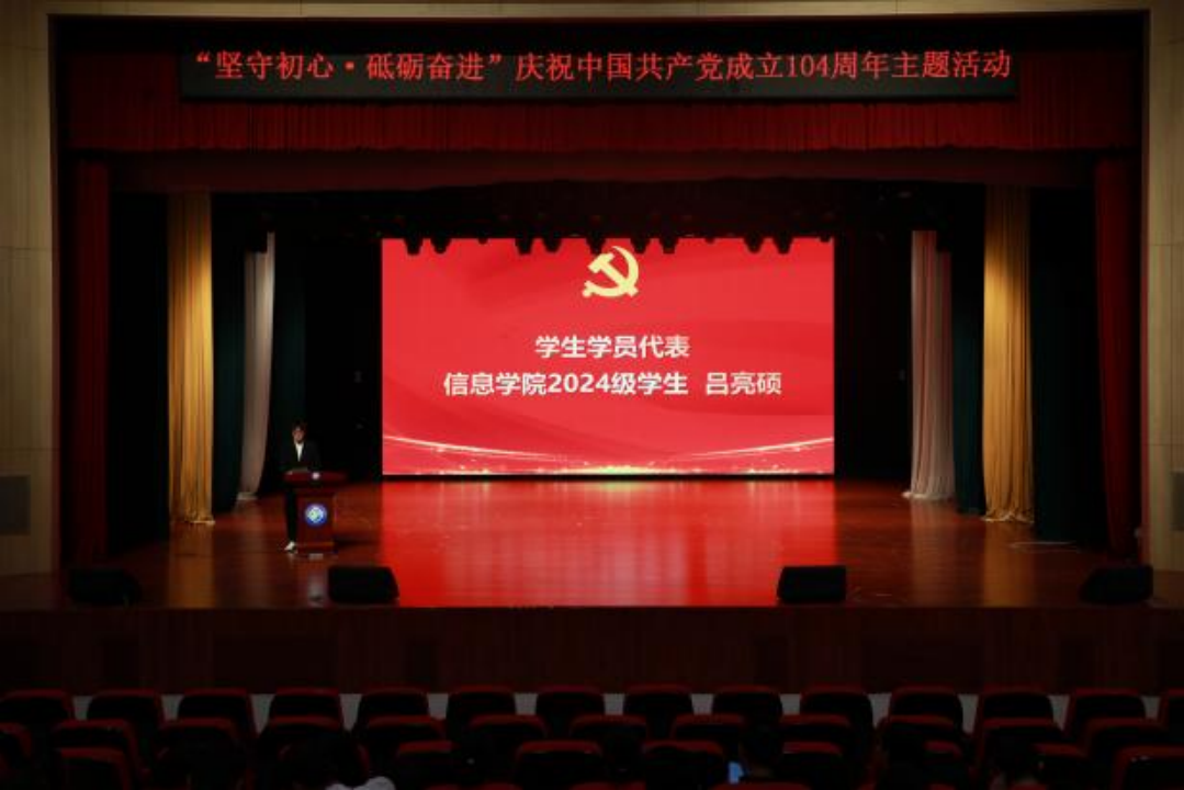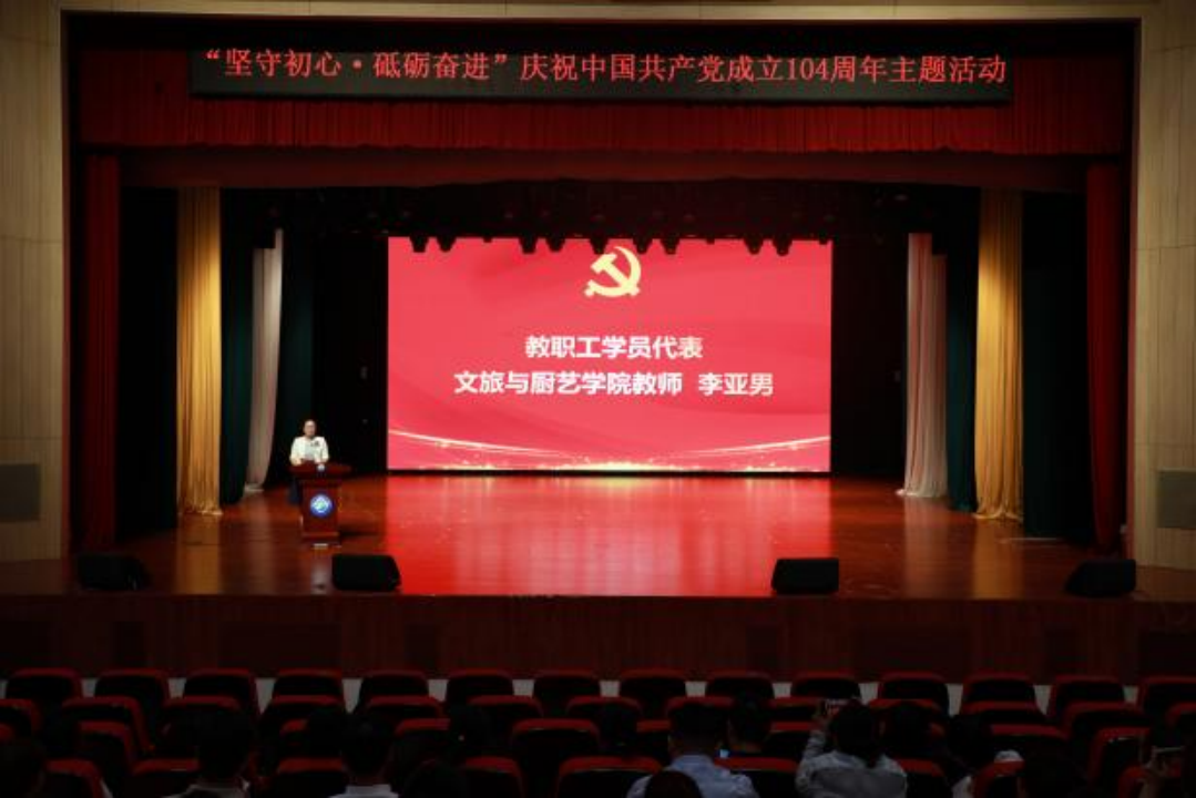 7月1日,学校“坚守初心·砥砺奋进”庆祝中国共产党成立104周年主题活动在艺术演播中心隆重举行。学校党委班子成员,全体党员干部教师,师生入党积极分子、发展对象,师生入党申请人代表参加活动。