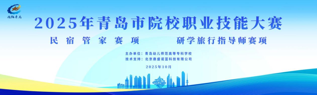 为加强青岛市文旅行业人才队伍建设,弘扬劳动光荣、技能宝贵的时代风尚,促进行业内管理水平和服务技能的交流与学习,10月15日—16日,2025年青岛市院校职业技能大赛——研学旅行指导师赛项/民宿管家赛项在青岛幼儿师范高等专科学校顺利举办。