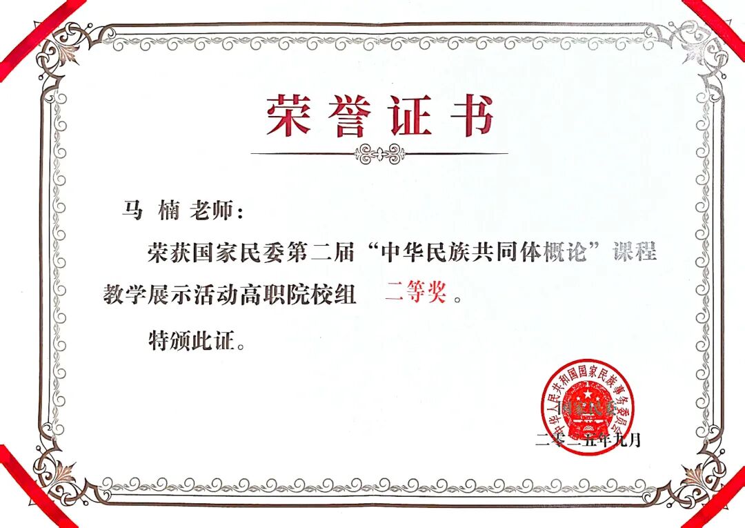 “此次参赛并获奖,对我而言是一次宝贵的教学成长历练。从反复打磨课程案例,到不断优化教学逻辑,备赛过程让我更深刻地理解了《中华民族共同体概论》课程的内涵,也提升了自身将理论转化为生动课堂的能力,这份收获远胜于荣誉本身。