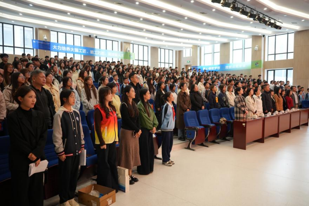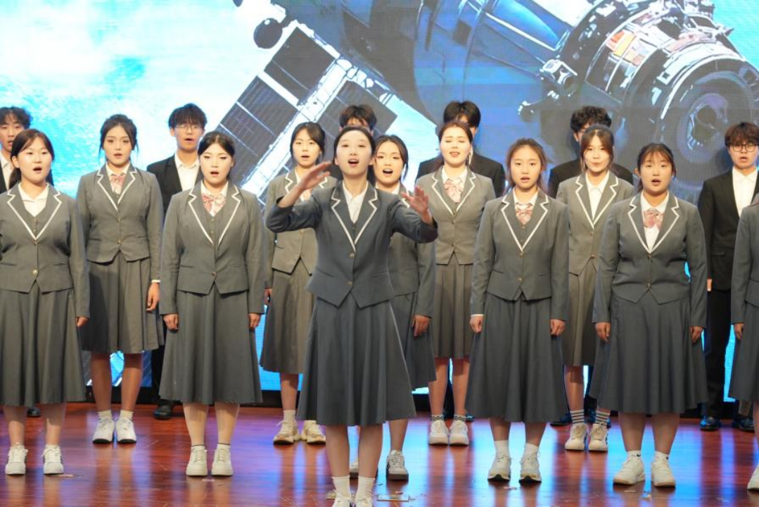 活动在全体学生激昂的诵读与合唱中达到高潮。在领诵人的带领下,学子们齐诵《少年中国说》,发出时代强音;共唱《寸心向党 歌唱祖国》,抒发对党的忠诚与对祖国的热爱。青春誓言与歌声交织共鸣,展现了新时代学子报效家国的赤子之心与坚定信念。
