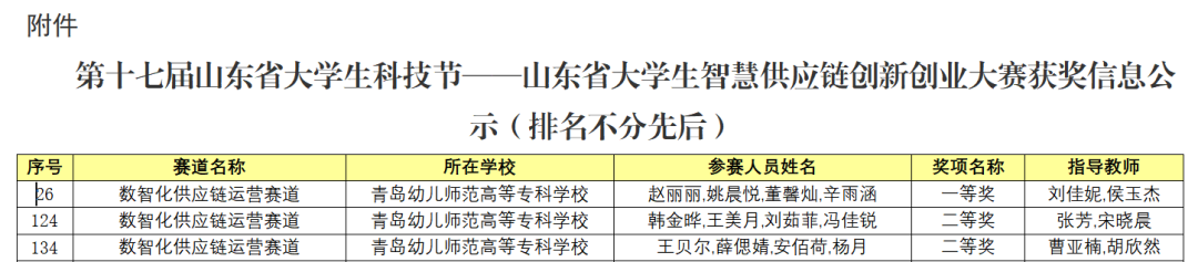 近日,由山东省科协、省教育厅等部门联合主办的第十七届山东省大学生科技节——智慧供应链创新创业大赛“数智化供应链运营”赛道圆满收官。此次比赛共吸引山东省内外68所院校的256支队伍参加,我校商贸学院的三支参赛团队经过多轮激烈比拼,最终凭借出色的数智化运营能力与创新思维,荣获一等奖1项、二等奖2项。