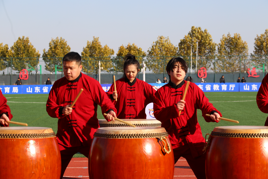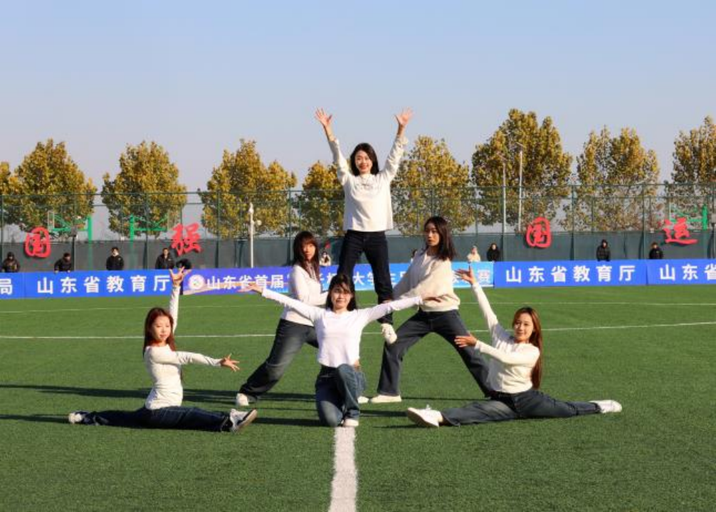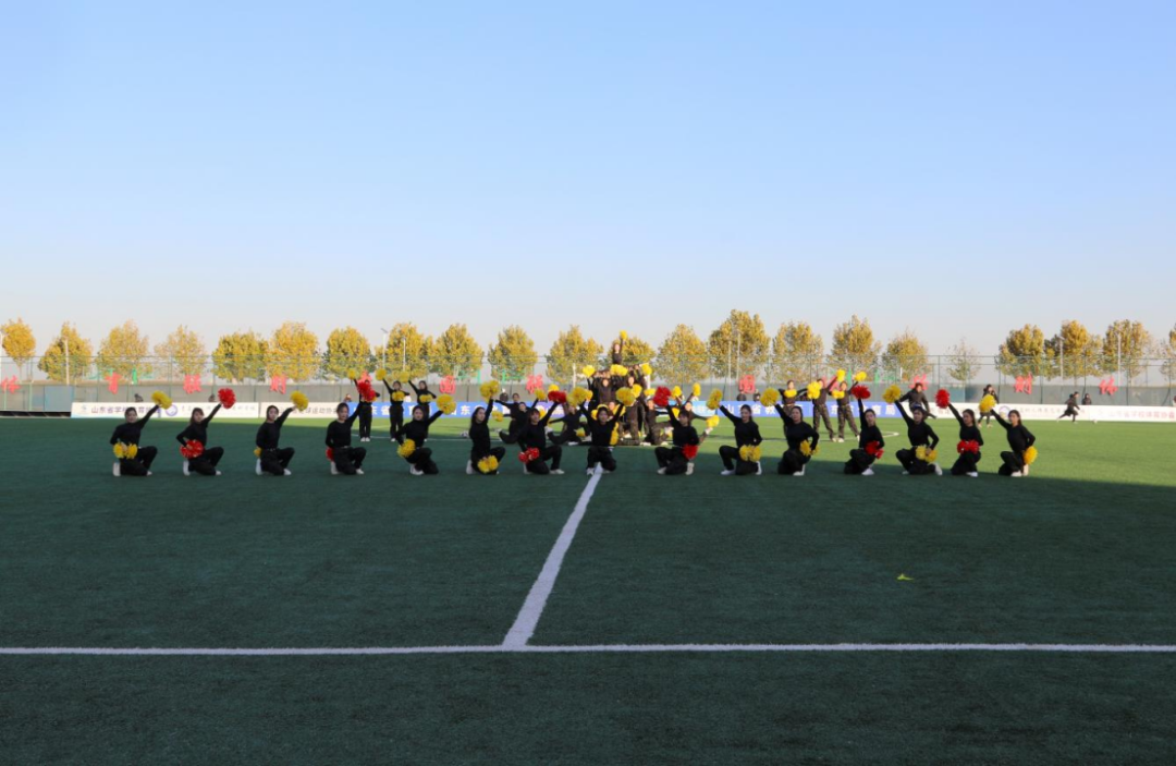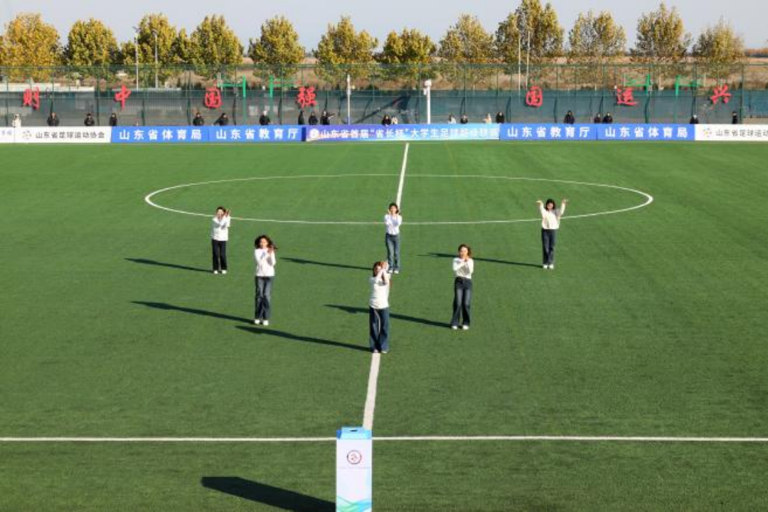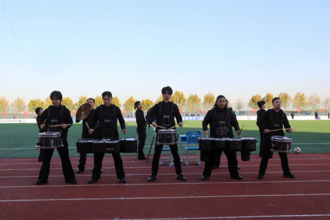 半场间隙,文体表演将赛场气氛推向新一轮高潮。体育教育学院带来的“金狮腾跃”表演,动作灵动矫健、张弛有度,将力量与美感完美融合;艺术与传媒学院的啦啦操《Cheer Up!》节奏欢快、舞姿热烈,充满青春张力,用整齐有力的动作为队员们加油鼓劲;学前教育学院的行进打击乐《边走边打》节奏明快,鼓点与步伐紧紧相随,鼓声与欢呼声交织,为绿茵赛场再添一抹鲜亮色彩。