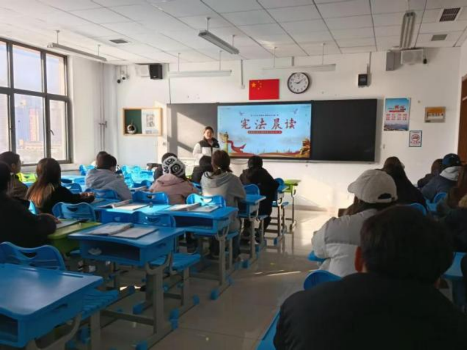 商贸学院组织开展了庄严而富有教育意义的“宪法晨读”活动,在领读人的带领下,同学们整齐肃立,手持宪法读本,齐声诵读宪法部分章节。通过逐字逐句地朗读,师生们不仅重温了宪法的核心内容,更深刻感受到宪法作为国家根本大法的神圣地位。