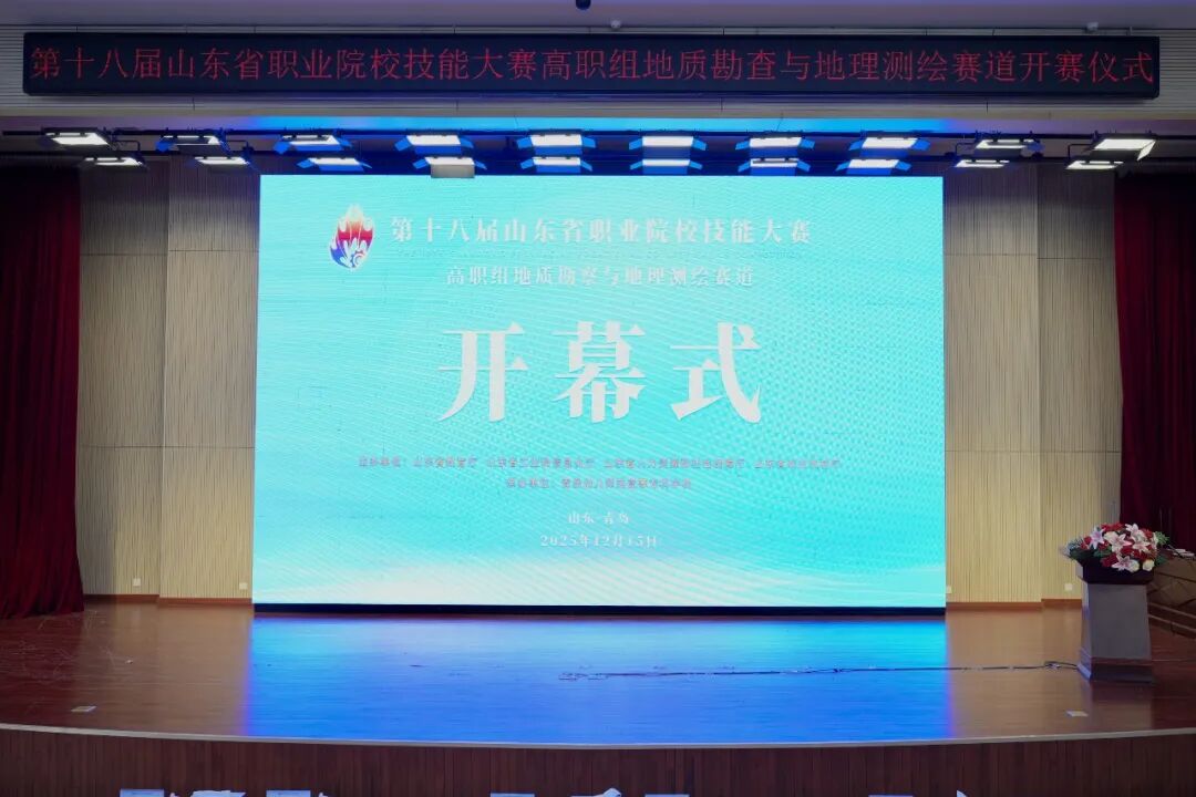 12月15日,由山东省教育厅、山东省工业和信息化厅、山东省人力资源和社会保障厅、山东省农业农村厅四部门共同主办的第十八届山东省职业院校技能大赛高职组地质勘察与地理测绘赛道开幕式在青岛幼儿师范高等专科学校举行。