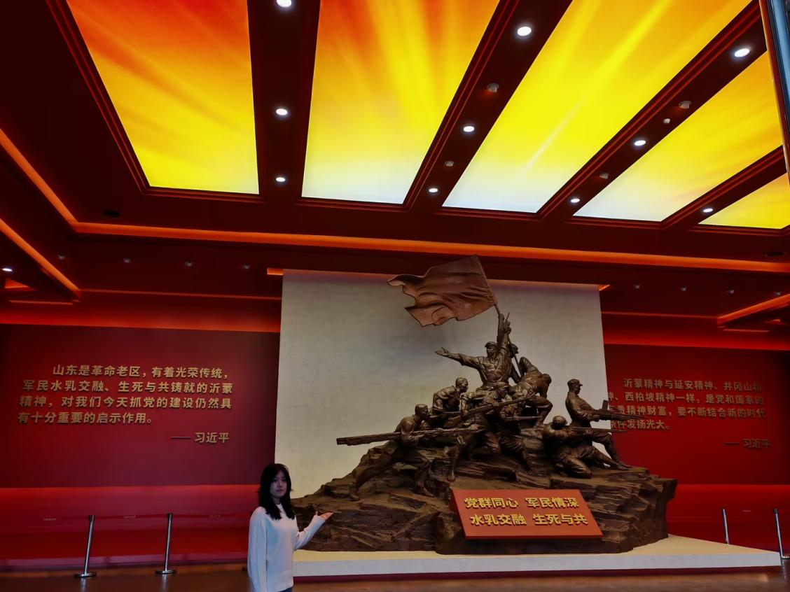 在参观沂蒙革命纪念馆时,一幅幅珍贵图片、一件件历史文物,将我带回那段烽火岁月。沂蒙人民用热血与赤诚,诠释了“水乳交融、生死与共”的沂蒙精神。红嫂拥军、军民同心的感人故事,让我深受震撼。作为新时代青年,我们应当铭记历史,传承红色基因,将沂蒙精神融入日常,以实干担当践行初心使命,不负时代,不负韶华。