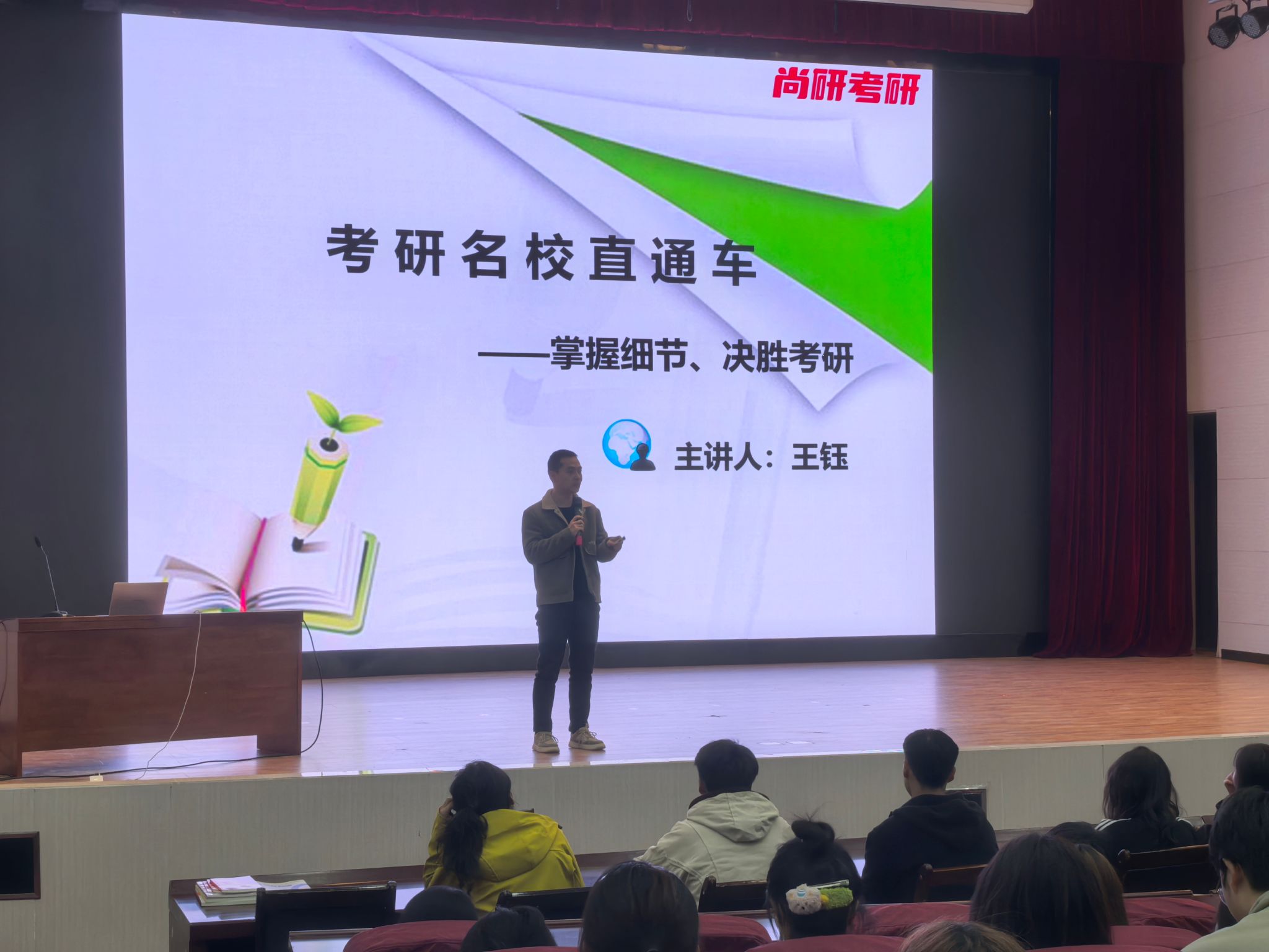 为促进我校学风建设,营造良好的考研氛围,为2026年考研做好准备,3月26日下午,学生工作处和就业创业指导中心联合考研机构,在鸿文楼学术报告厅开展以“掌握细节、决胜考研”为主题的“名校直通车”专题讲座,全校各学院大一至大三年级共500余名学生参加。