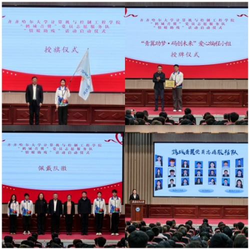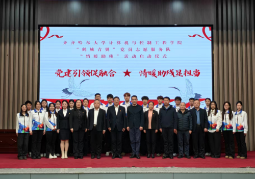 为深入贯彻新时代立德树人工程,强化党建引领下的大中小学思想政治教育一体化建设,建立校地联动、党建带团建的良好机制,3月11日下午,我校计算机与控制工程学院“鹤城青翼”党员志愿服务队“情暖助残”活动启动仪式在日新大厦四楼报告厅举行。校党委副书记张文治,齐齐哈尔市残联党组书记朱宏宇、副理事长刘永明、组织宣传文体部部长葛龙,校团委书记计红,计算机与控制工程学院党委书记吴银玲、院长张剑飞等出席。仪式由学院党委副书记孟庆伟主持。