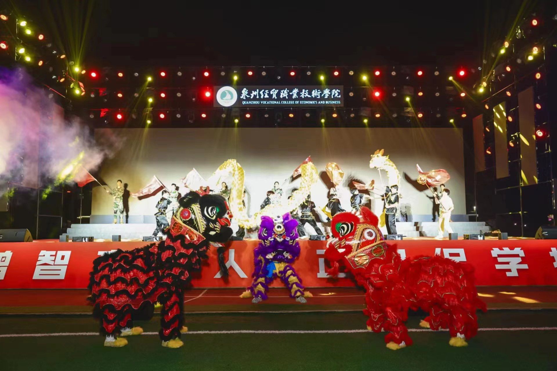 11月14日晚,学院2023年迎新晚会在大操场举行,学院党委副书记、院长黄敬前,党委副书记陈金通,党委委员、纪委书记郭根才,党委委员、慈山分院党总支书记梁松刚,金龙街道副主任许幸娟,学院各部门、院系相关负责人,以及2023级新生和辅导员参加晚会。