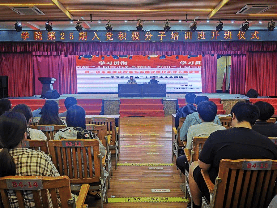 为做好新时代党员发展和教育工作,10月28日晚,学院在大礼堂举行第25期入党积极分子培训班开班仪式,并邀请中共泉州市委党校教授作专题授课,来自各基层党组织的319名大学生入党积极分子和6名教职工入党积极分子参加培训。