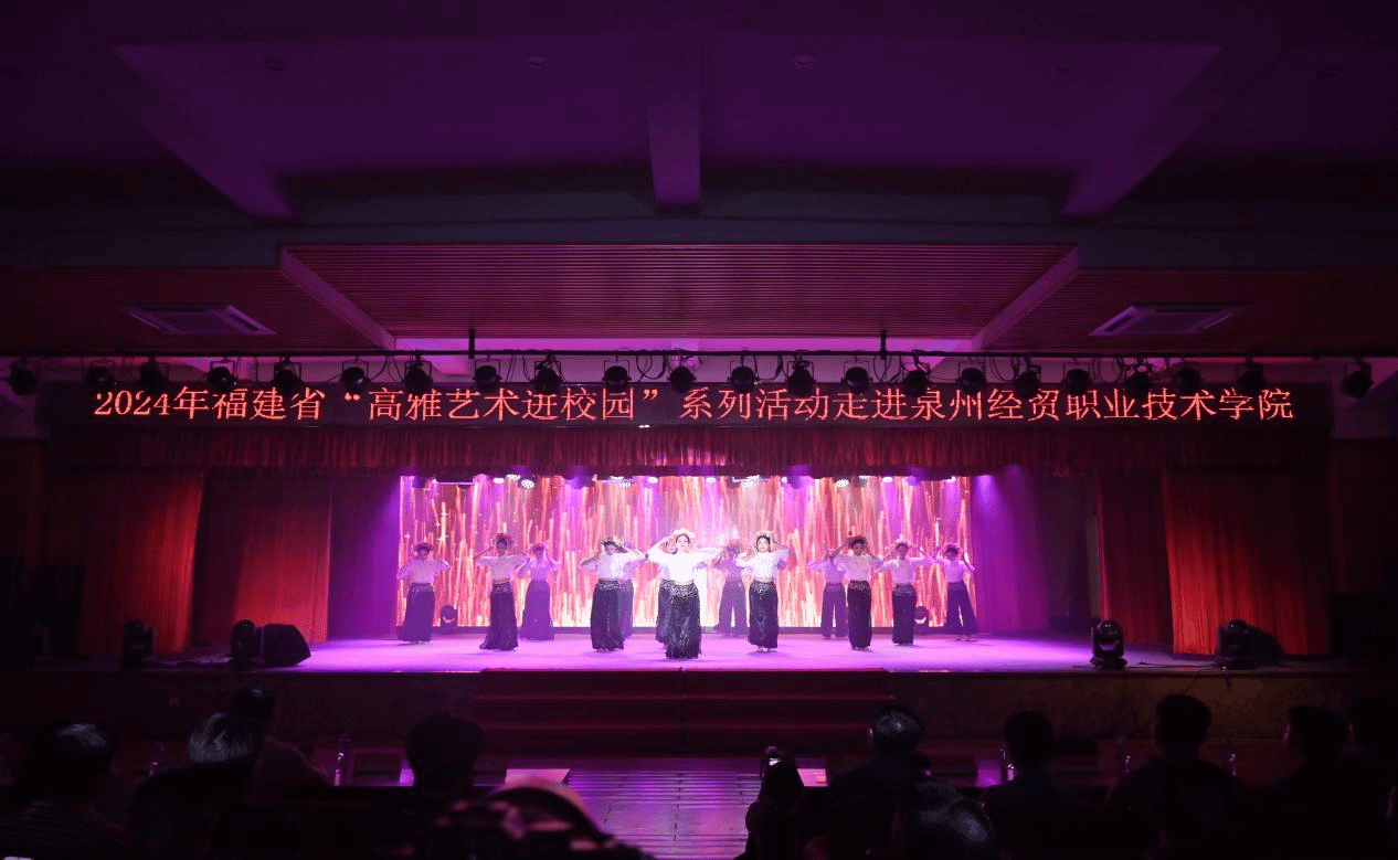 美育浸润人生,艺术陪伴成长。10月20日,“海丝雅韵,歌舞青春”福建省高雅艺术进校园系列活动在我院大礼堂举行。学院党委副书记陈金通、泉州幼儿师范高等专科学校艺术学院院长卓莉莉,以及学院各相关职能部门、各系党政负责人、军训全体官兵和各系师生代表1000余人参加晚会。