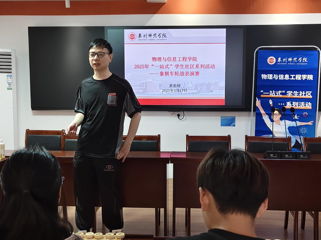 为弘扬中华传统文化,增添社区文化氛围,2025年4月17日,物信学院于C区13栋新时代大学生文明实践中心举办象棋车轮战表演赛。