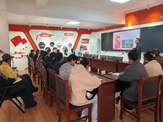 12月23日晚,美术与设计学院第 30 期入党积极分子培训班专题讲座在学生社区举行,学院党委书记尤建军以《找准青春坐标,奔赴中国式现代化星辰大海》为题授课。