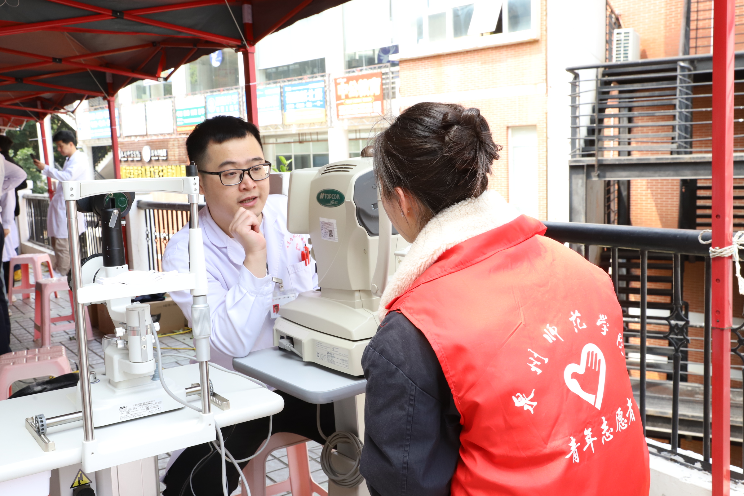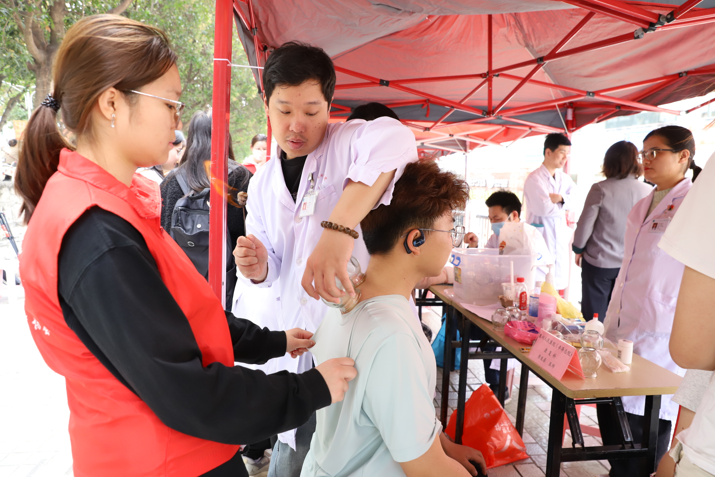 “同学,要少熬夜、多休息,眼睛近视度数有点高了。”来自泉州医高专附属人民医院中医科、眼科、口腔科的专家团队正在为师生们提供“一站式”健康服务,通过血压血糖测量、视力检查、口腔检查、中医辨识等方式,对青年群体常见的用眼疲劳、口腔保健等问题给予专业指导,并赠送眼罩、护牙用品,引导师生树立“自己是健康第一责任人”的意识。活动现场,还进行了婚育政策科普,布置新型婚育宣传区,创新设置投壶、石膏娃娃彩绘等趣味互动,将科学婚育、优生优育等理念融入游戏中,引导青年学生树立健康文明的婚育观。