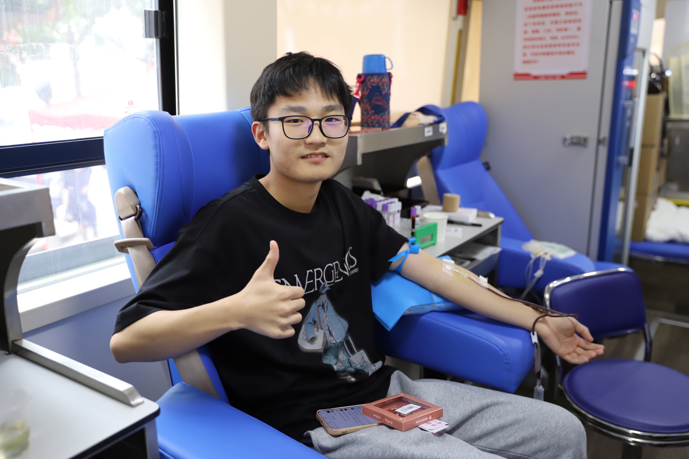 在无偿献血区,吸引了众多教职工与青年学子踊跃参加,部分学生是首次参加无偿献血。在医护人员和志愿者的鼓励下,他们纷纷挽起袖子、献出殷殷热血。“这是我第一次献血,想到自己的血液能够帮助到有需要的人,就觉得特别有意义!”一位刚完成采血的大三学生激动地说道。