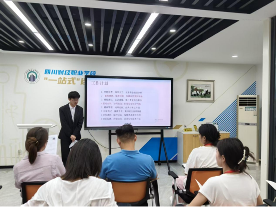 2025 年 6 月 17 日 18:00,四川财经职业学院 “一站式” 书香社区学生管理委员会第十三届干部竞选面试在事务中心二楼共享报告厅正式拉开帷幕。学生工作部部长田刚成、管委会指导教师张毛宁全程参与,共同见证这场关于责任与传承的青春接力。