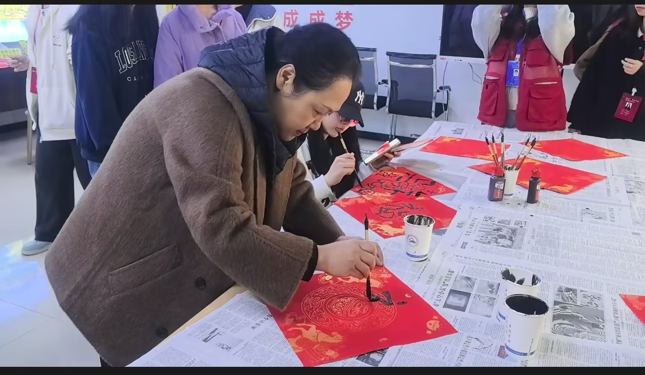 活动现场张灯结彩,猜灯谜、投壶、剪纸、写福字、踢毽子等十大传统民俗体验项目吸引了众多学生参与。汉服协会同学身着传统服饰巡游展示,增添古韵风采。张华书记、罗潇院长与同学们一同参与体验各个项目并为同学们送上节日祝福。