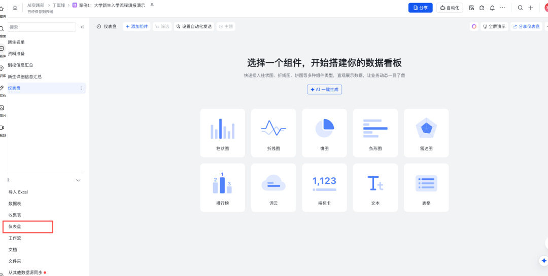 在日常问卷管理方面,辅导员可以将各类问卷数据在多维表格中置顶或制作成合集,实现统一管理。仪表盘功能则支持添加各种组件,实现目标管理和自动分析。通过设置自动化规则,问卷提交后可以触发通知或数据汇总,形成完整的管理闭环。这种集成化的管理方式,让辅导员能够轻松应对繁杂的日常事务。
