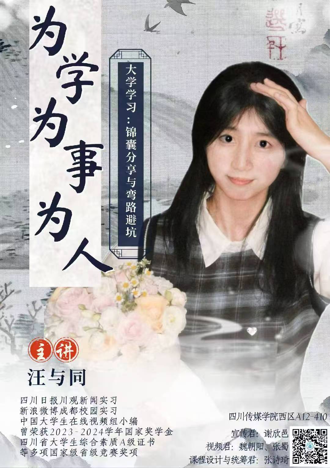 听完汪与同学姐的分享,我对大学学习与成长有了更清晰的认知: