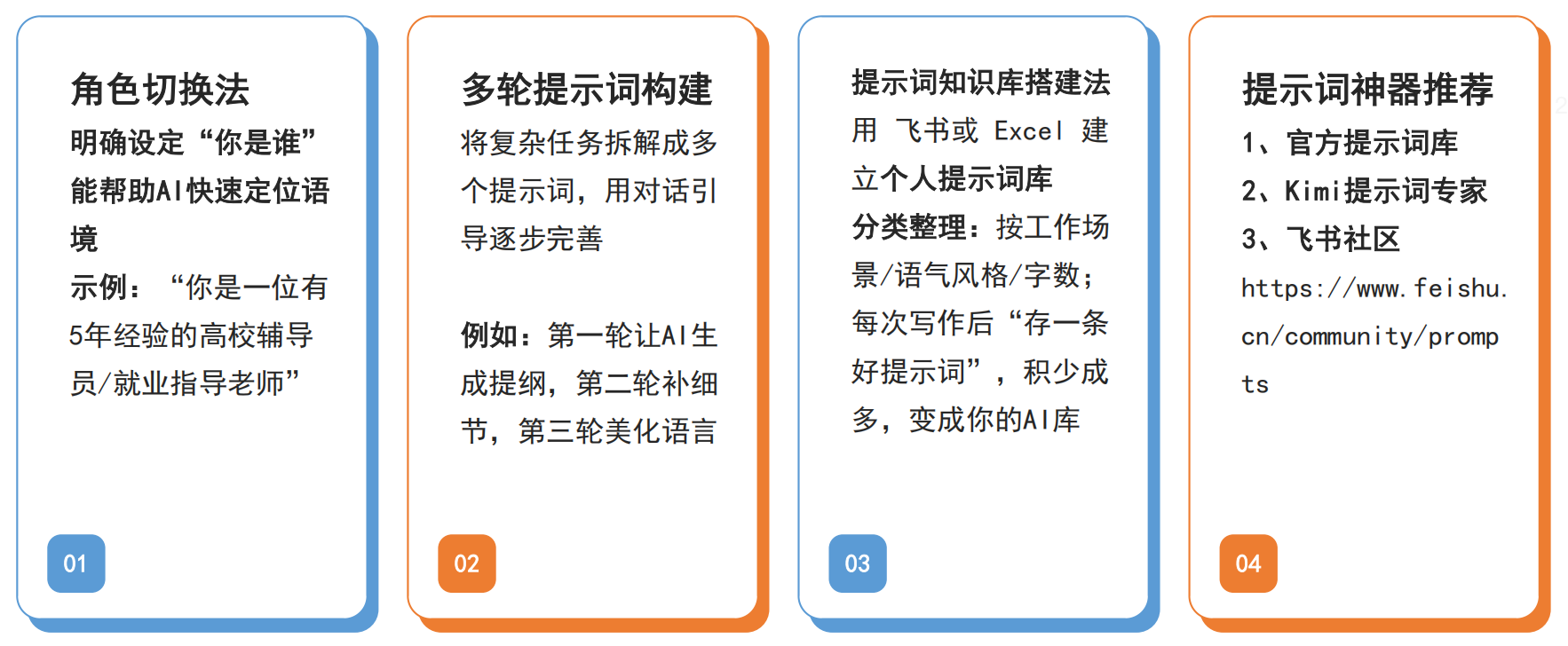 通过角色切换适配场景、多轮对话明确需求、积累模板复用过高效指令,能提升AI工具使用效果。