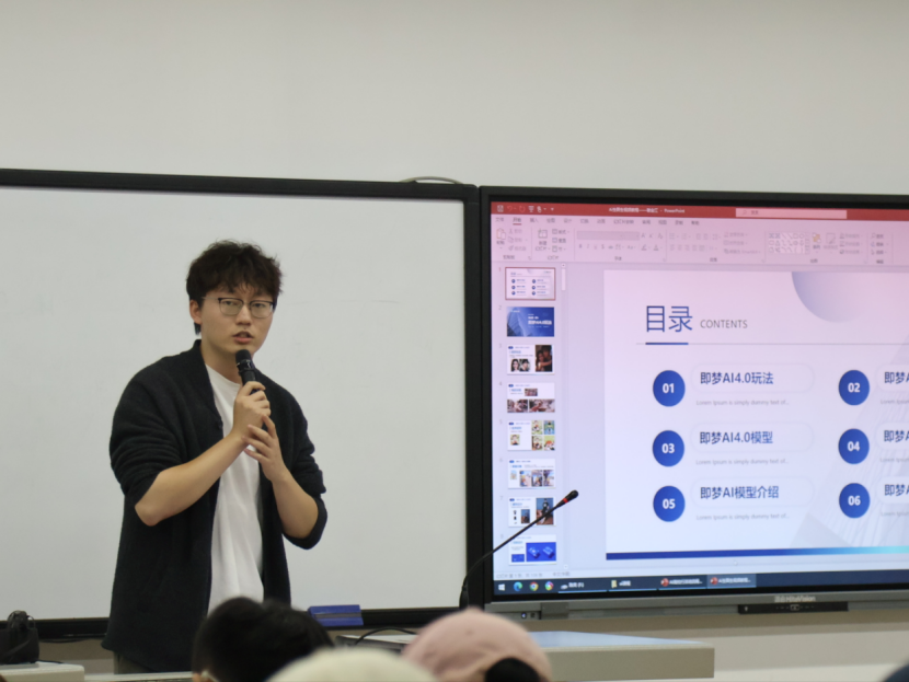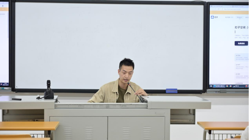 现场,他还通过 PPT 智能制作、视频播客生成、创意设计辅助、表情包自动创作、短剧脚本开发、电商视觉设计等实例,直观呈现 “2025 年 AI 将深度融入各行业” 的发展趋势,引发师生广泛共鸣。