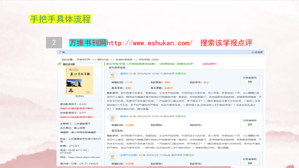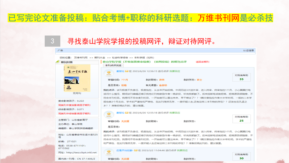 •网评验证:通过万维书刊网查询期刊点评,理性看待审稿周期、录用率等反馈(如部分期刊存在审稿拖拉问题,需提前规避);