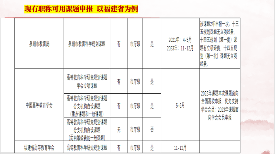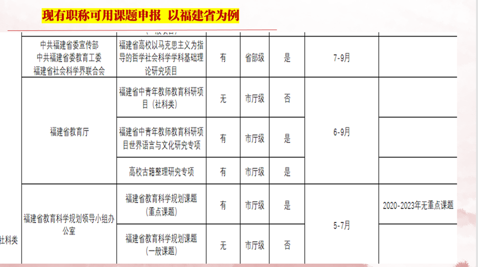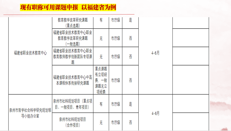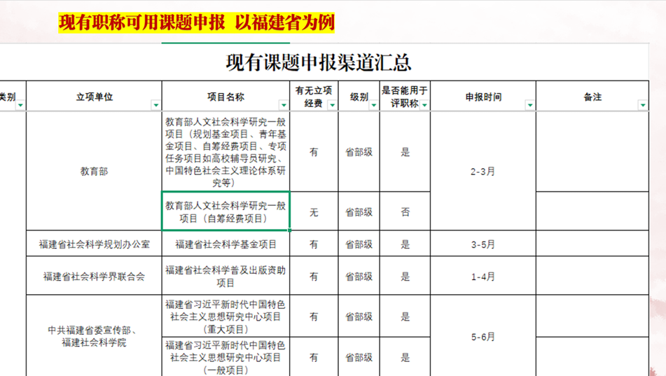 先明确自身职称对应的申报权限,以福建省为例,从教育部人文社科项目(省部级,2-3 月申报)到泉州市社科规划项目(市厅级,4-6 月申报),不同级别课题的经费支持、评审标准差异显著。