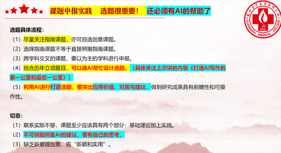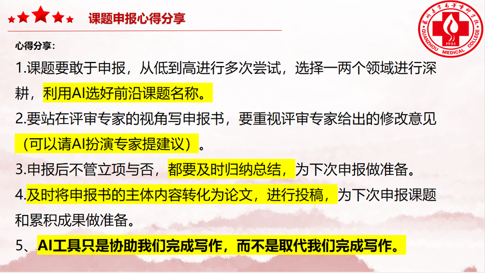 • 换位思考:站在评审专家角度撰写申报书,重视修改意见(可让 AI 模拟专家提建议);