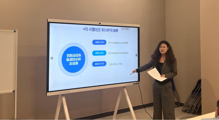 罗胡阳老师介绍了本学期文体模块的工作计划。她提到,社区将联合学院举办“校长杯友谊赛”“洗星体育节”“洗星讲堂”等系列活动,旨在通过文体活动增强学生的凝聚力和归属感。这些活动不仅能够丰富学生的课余生活,还能促进学生之间的交流与合作,营造多元化的社区文化氛围。