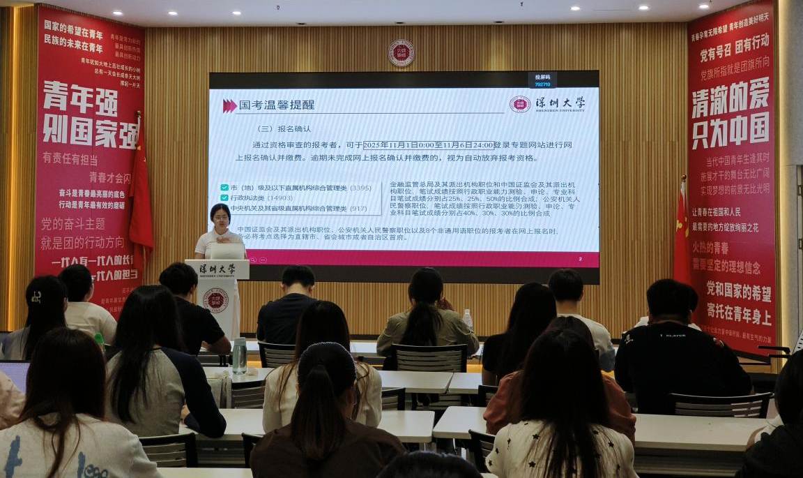 来自经济学院研究生第五党支部的李俏莹同志为同学们分享了如何用VLOOKUP函数精准匹配国家公务员考试选岗时的报考人数和科学决策,她提醒想要留在深圳和大湾区工作的同学们在毕业年份一定要充分了解备考信息,提前规划,把握应届生国考,广东省考,选调生考试三次机会,争取一战成公。