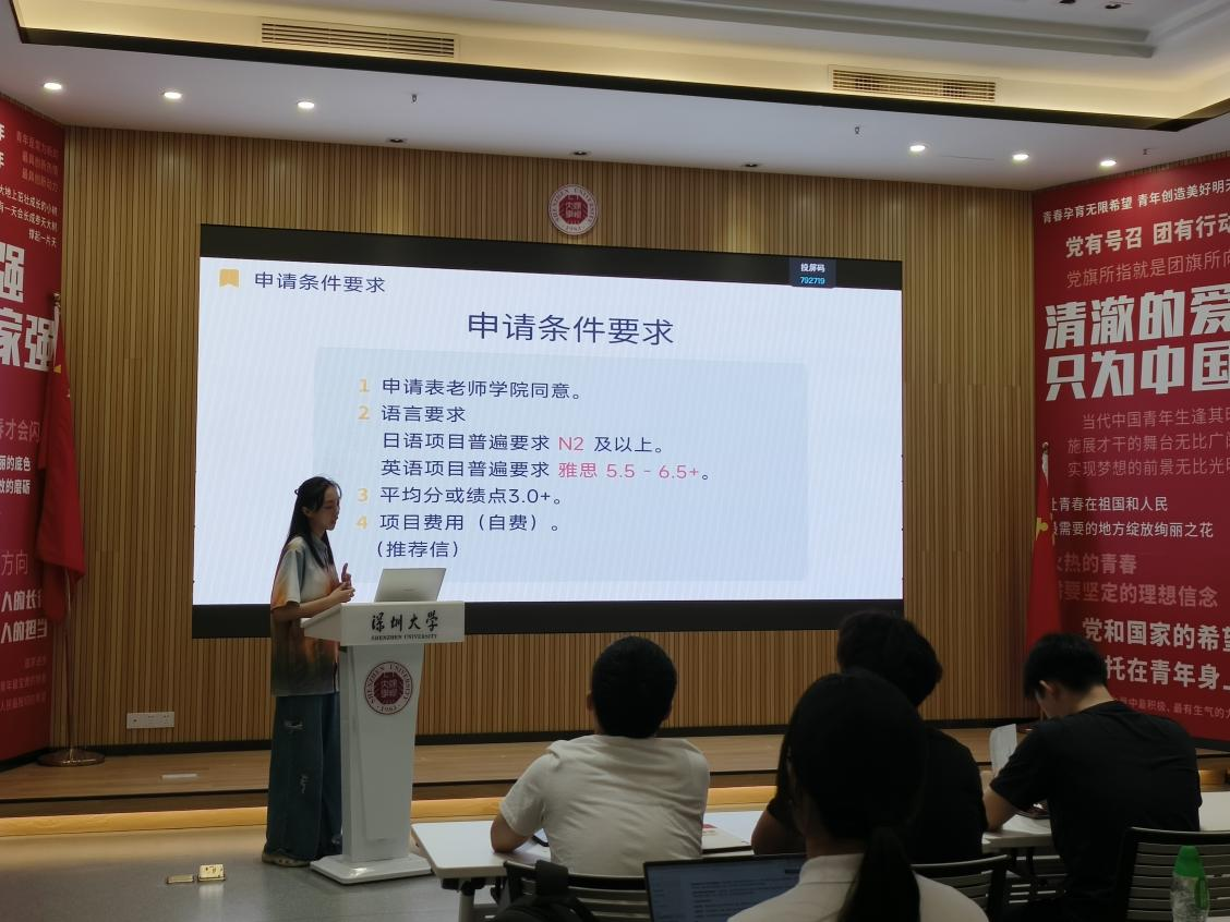 互动环节上,参会同学们积极探讨,熊老师也向大家补充了深圳大学国际交流与合作部对于申请出国交换的相关政策。一位理论经济学研一的新生感慨:“原来研究生阶段也可以努力申请国家留学基金委的项目并获得资助,今天的学习让我对申请交换,开拓视野更有信心了。”