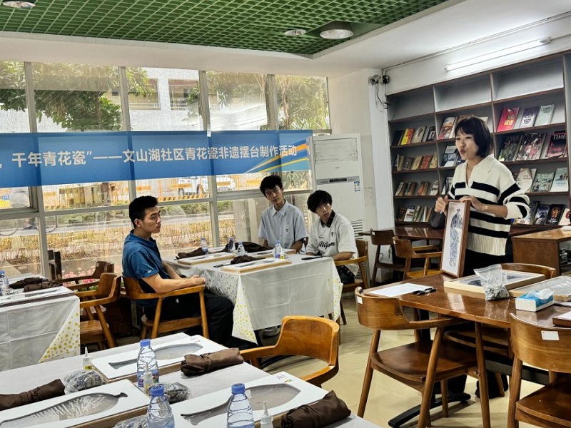 深圳大学文山湖学生社区顺利举办“方寸Mosaic,千年青花瓷”中外学子青花瓷装饰摆台制作活动