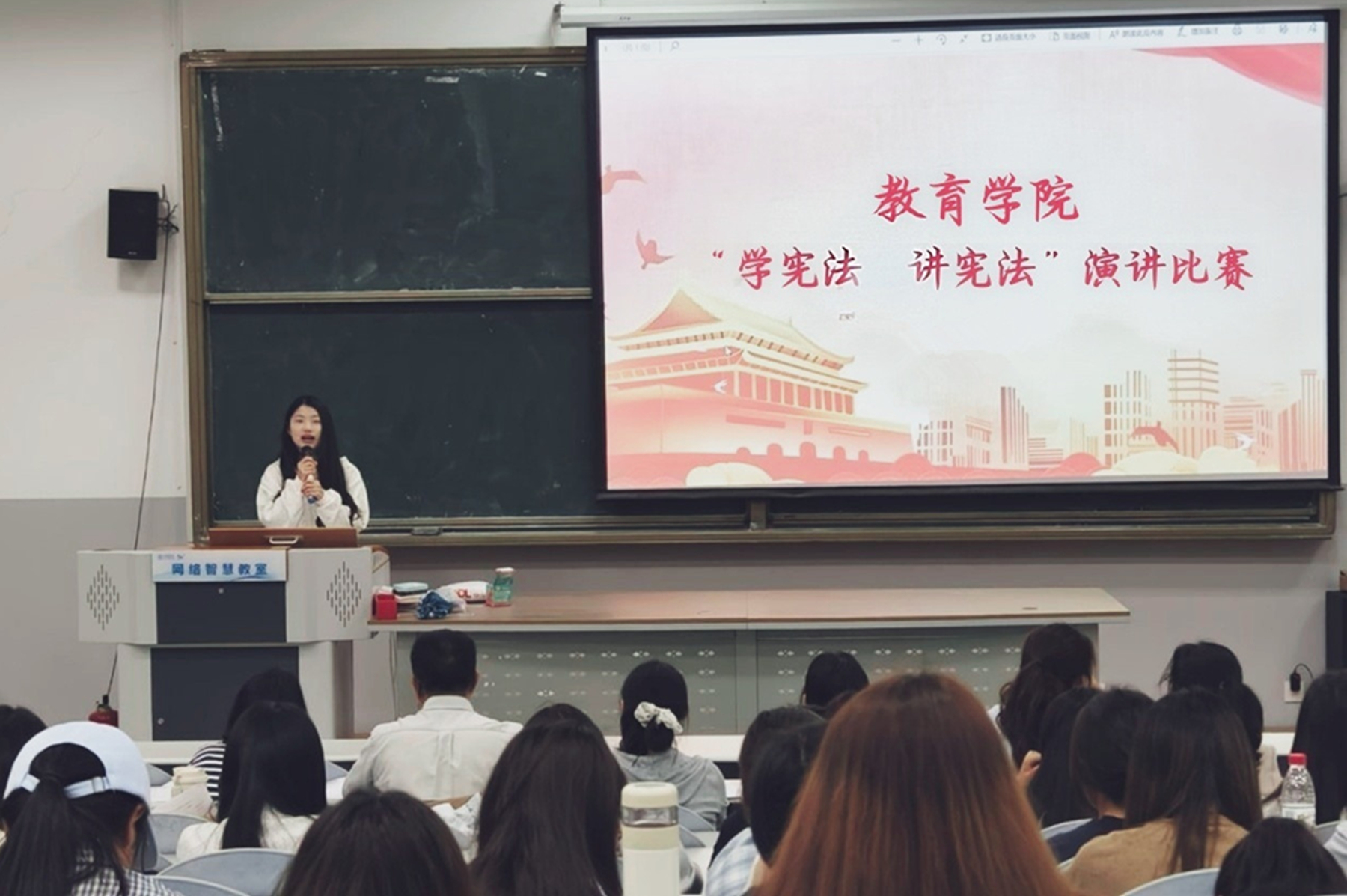 为深入贯彻落实党的二十大精神,推动宪法教育常态化、长效化,增强青年学子的法治观念与宪法信仰,教育学院于近日举办“学宪法 讲宪法”主题演讲比赛,共有9名选手参加决赛。