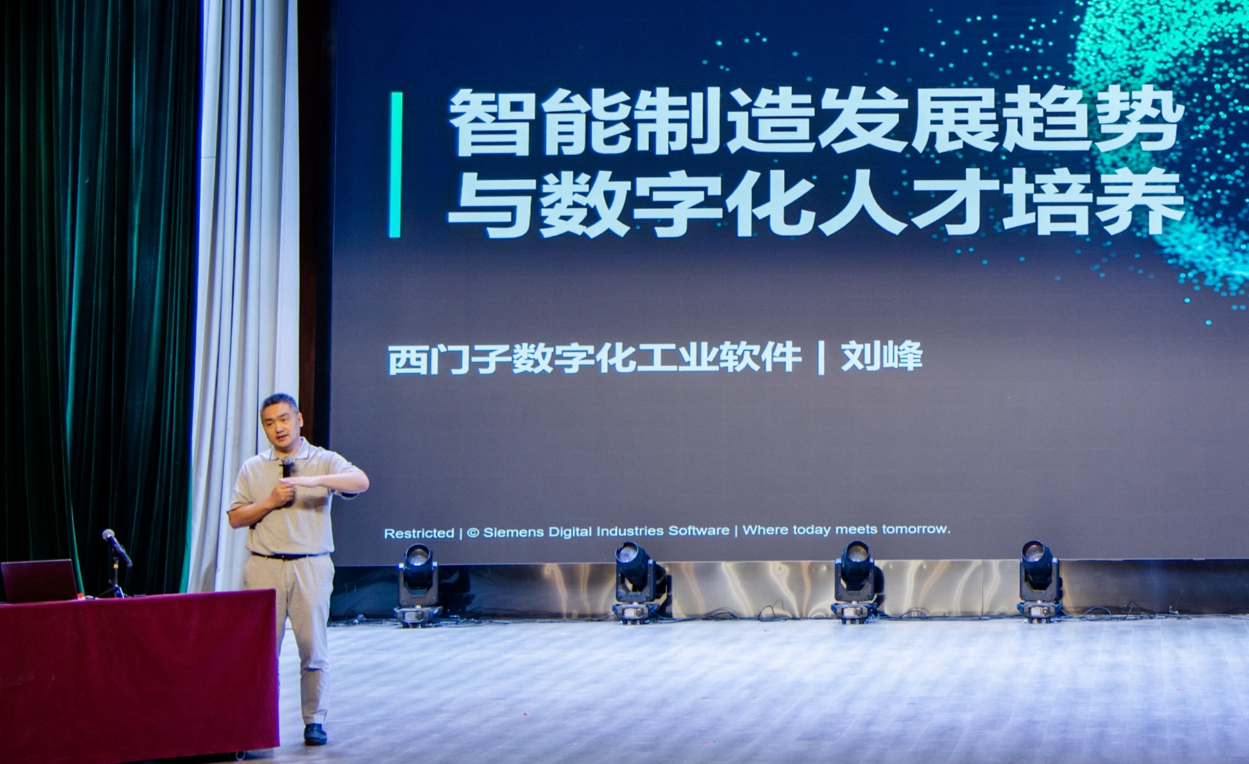 为深化产教融合,助力装备制造人才培养,5月15日下午,四川工程职业技术大学智能制造产业学院特邀西门子工业软件技术总监刘峰在学校立言楼演播厅举行题为“智能制造发展趋势与数字化人才培养”的科普讲座。来自智能制造产业学院和电气工程学院的400余名师生现场参加活动,同时学校官方抖音账号向全校师生进行直播。