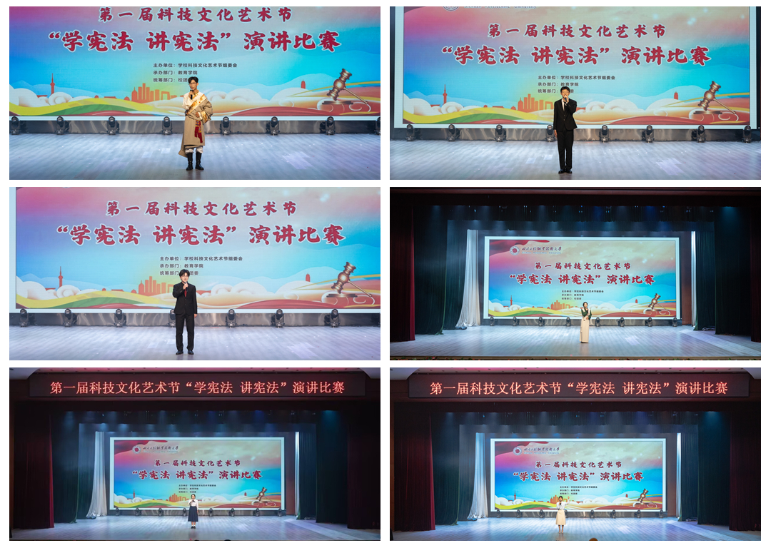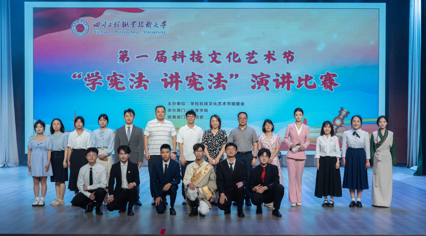 为深入贯彻党的二十大关于推进文化自信自强、建设法治中国的战略部署,落实习近平总书记“让宪法精神在青少年心中生根发芽”的重要指示,全面落实立德树人根本任务,5月20日,由四川工程职业技术大学党委宣传部、教育学院、校团委承办的第一届科技文化艺术节“学宪法 讲宪法”演讲比赛决赛,在立言楼演讲厅如期举行。