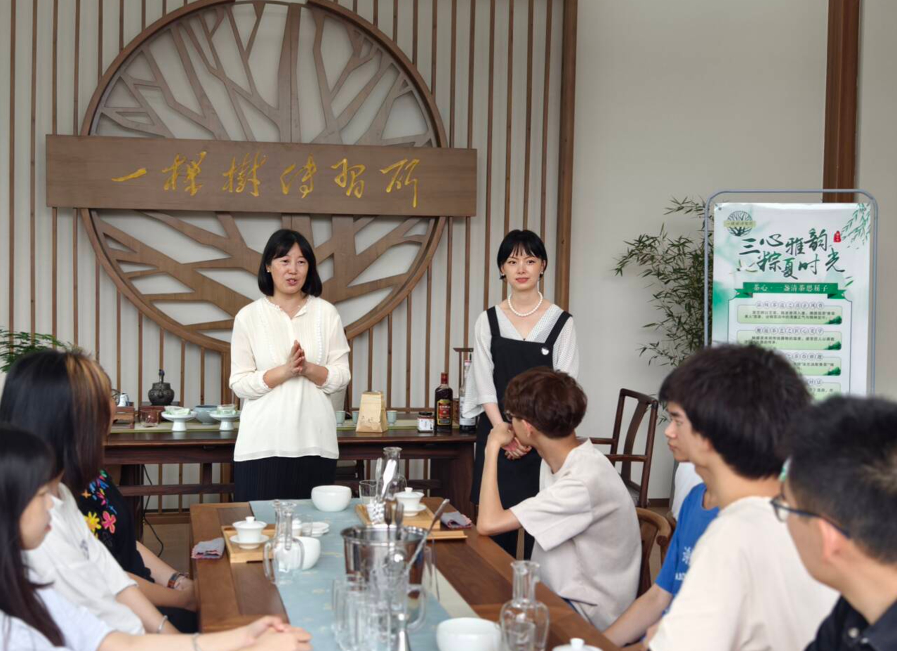在端午节来临之际,一场别开生面的传统文化活动在学校“一棵树传习所”上演。5月29日下午,机械工程学院60余名师生齐聚一堂,以“三心雅韵 粽夏时光”为主题,开展了一场沉浸式文化体验活动,在茶香、琴韵与巧手中感受中华优秀传统文化的独特魅力。