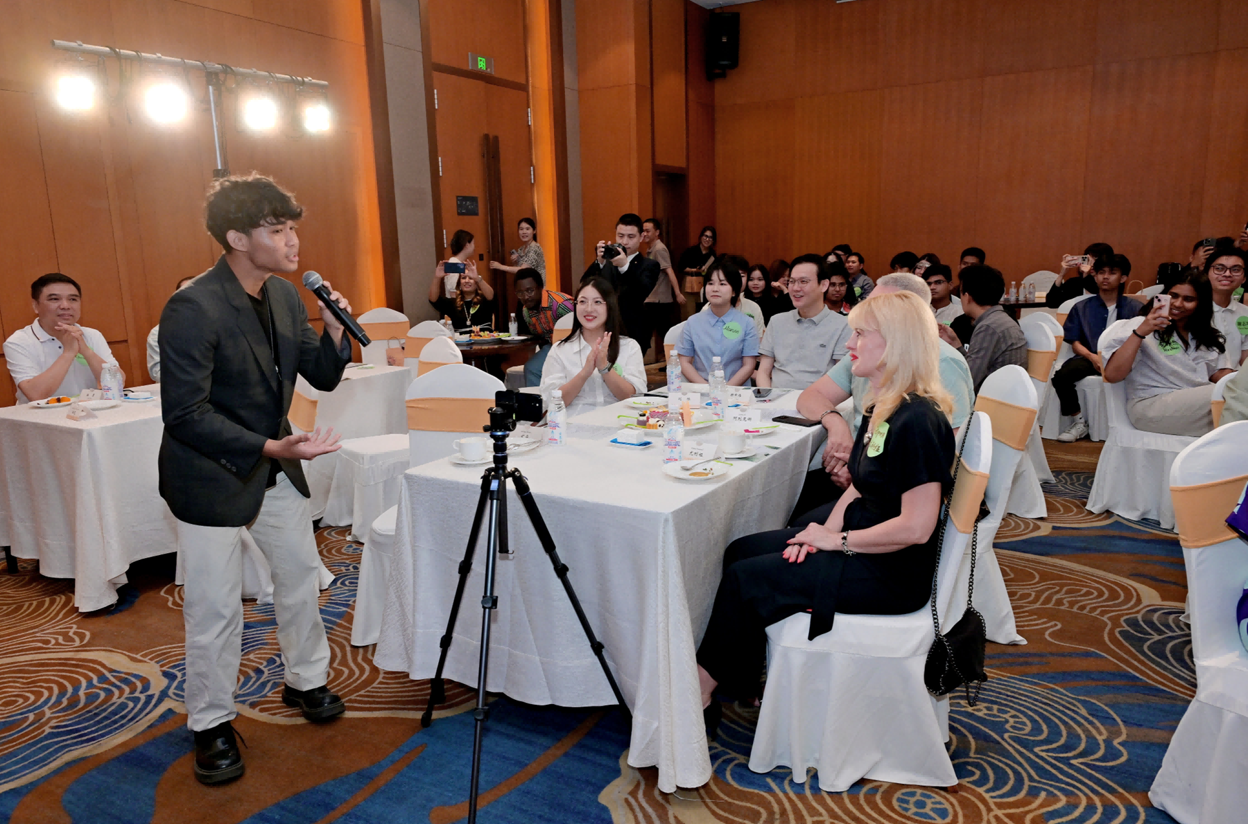 同样来自印度尼西亚的经济管理学院大二留学生翰心欢(RAPHAEL EFRAIM PAKPAHAN)则用一首深情的《童话》,将所有嘉宾带入了一个如梦如幻的音乐世界,大家沉浸其中,如痴如醉。表演结束后,翰心欢激动地说:“这次活动真的太棒了!明年我还想参加,到时候给大家唱《如愿》。”