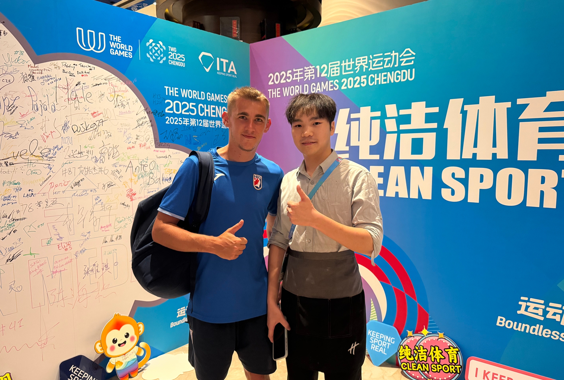 世运会期间,同学们迅速融入岗位,在前台接待、餐饮服务、多语咨询等关键环节表现出了高度的专业素养。他们不仅熟练操作酒店数字化管理平台,高效完成入住登记、需求响应等工作,更凭借出色的跨文化沟通能力,主动为各国宾客提供翻译服务、行程确认及个性化协助,成为连接酒店与国际客群的重要桥梁。其中,王梓翰与陈佳怡两位同学表现尤为突出,他们以周到细致的服务赢得宾客多次表扬,其事迹获酒店官方公众号专题报道,成为校企共育成果的生动案例。