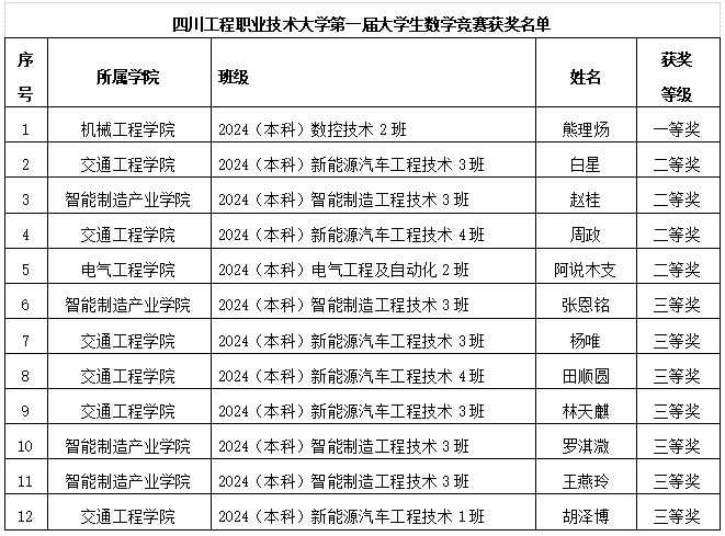 四川工程职业技术大学第一届大学生数学竞赛圆满落幕