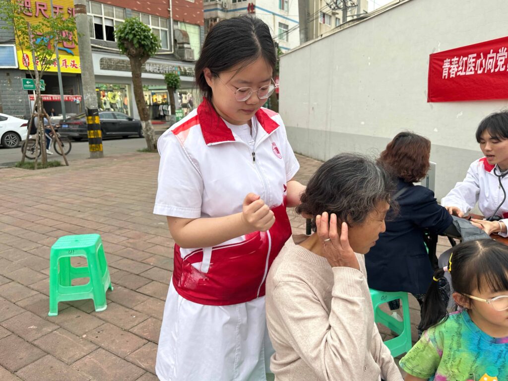 为深入学习贯彻党的二十大精神及党的二十届三中全会精神,扎实推进党建“双创”工作,医药健康学院学生党支部持续深耕“青春红医·健康青年”党建品牌建设。4月23日,一场别开生面的“青春红医·健康青年”党建品牌——南丁格尔志愿服务活动在同安街福圣社区希望路路口顺利展开。此次活动,8名南丁格尔志愿者代表积极投身其中。他们以青春之名,践健康之诺,用实际行动深刻诠释青春与健康的紧密相连,为社区居民送去暖心关怀与专业服务,大力传播健康知识。