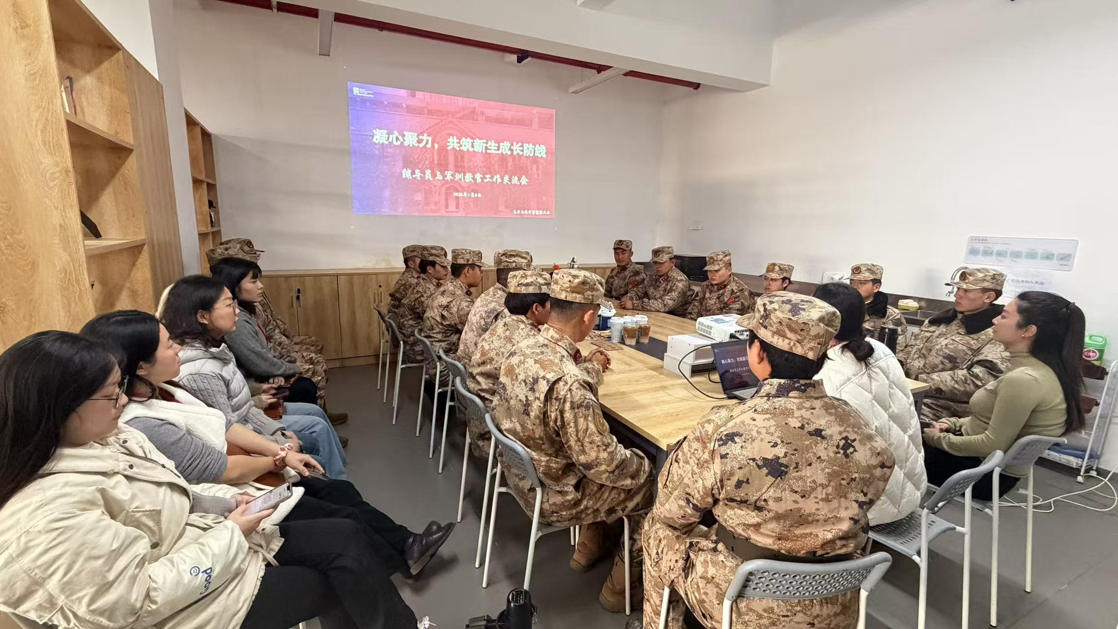 为更有效地统筹学生军训工作,加强军训期间的学生管理、后勤保障和安全防护工作,2026 年 1 月 8 日,艺术与设计学院组织召开 2025 级辅导员与军训教官专项交流会。围绕军训期间的重点工作任务,展开了深入探讨,以凝聚育人合力。